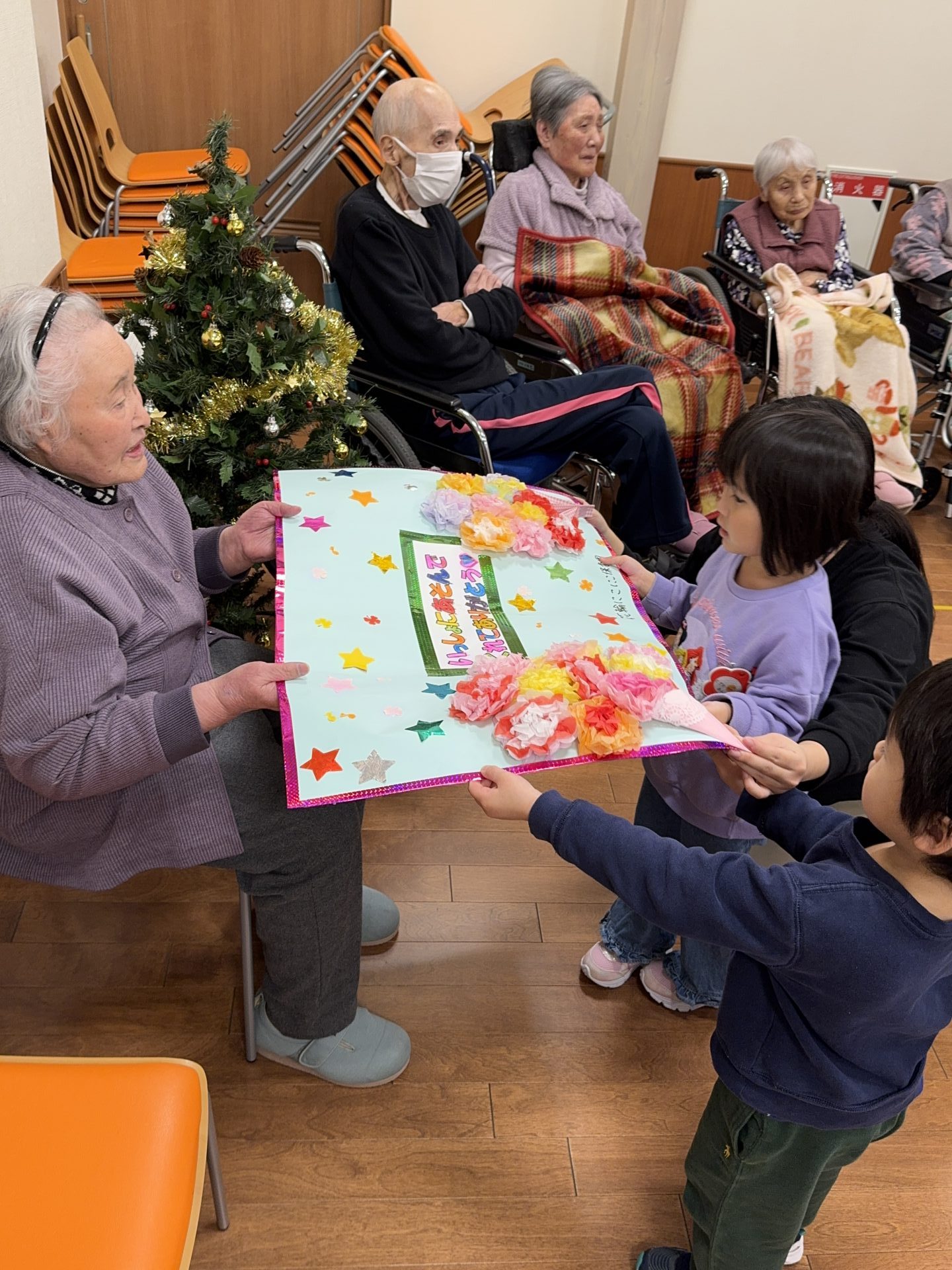 クリスマス前のこの日、子ども達がステキなプレゼントを作ってきてくれました。小さい手で一生懸命作ってくれた贈り物、大切に施設玄関に飾らせていただきます。ありがとうございました。