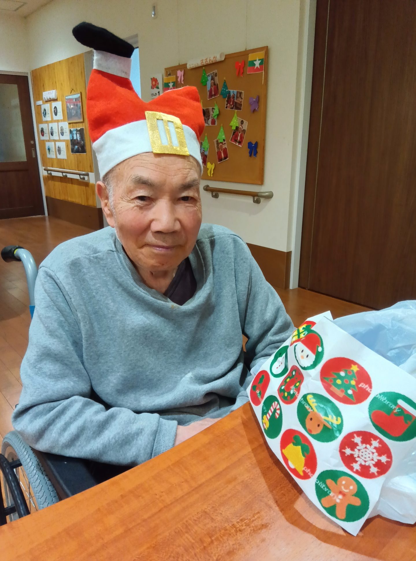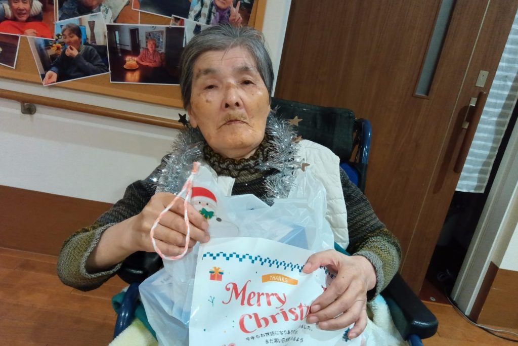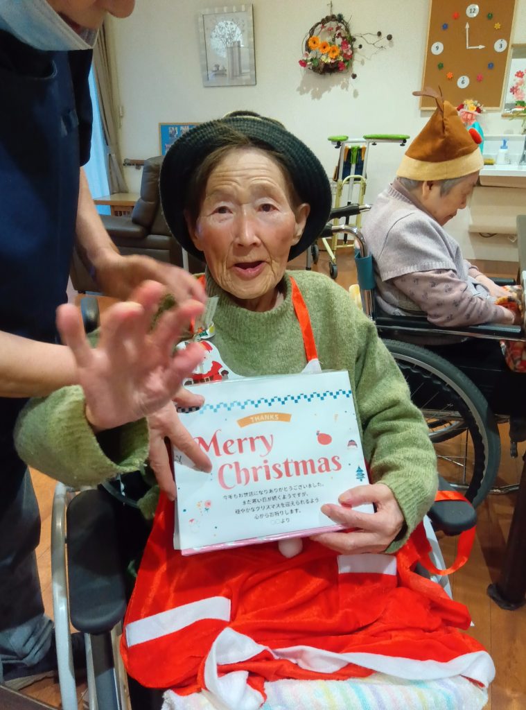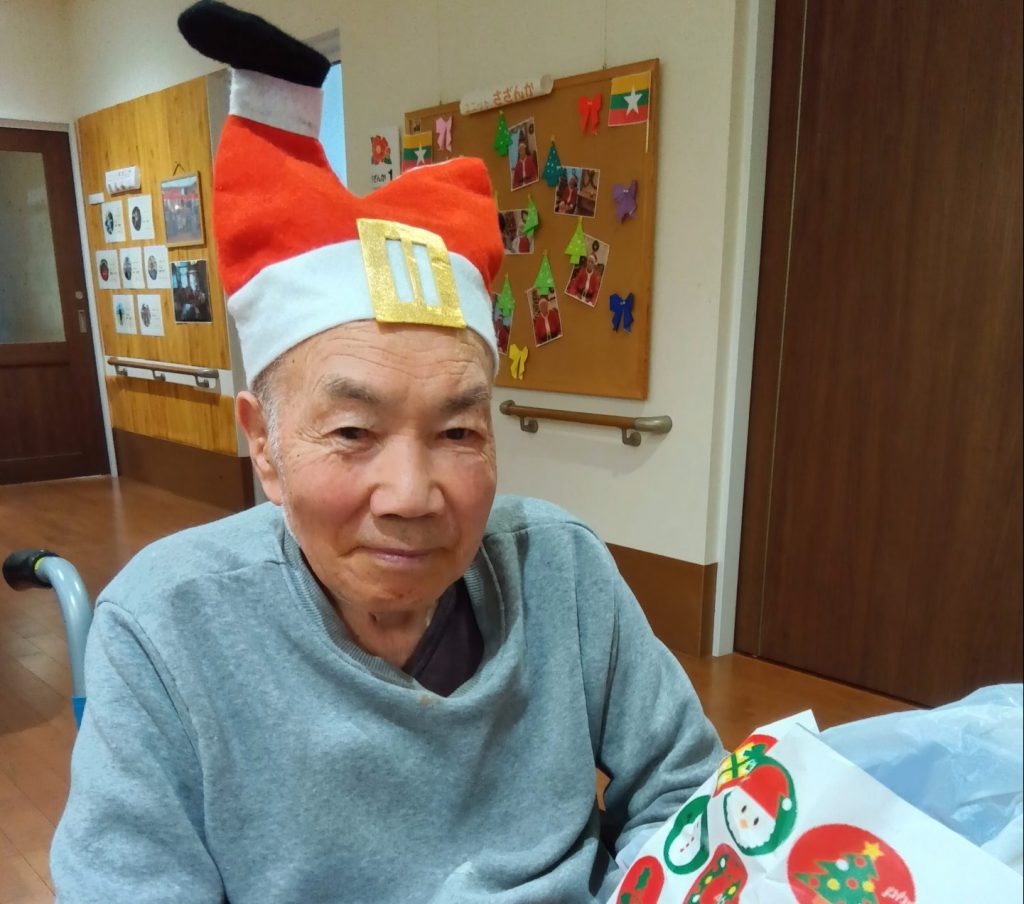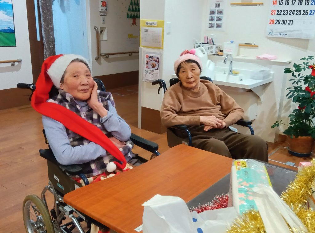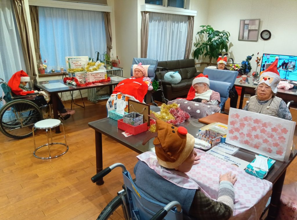 入居者のみなさんもクリスマスの衣装を身につけて、気分を味わいました。