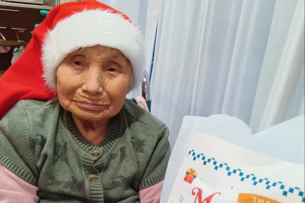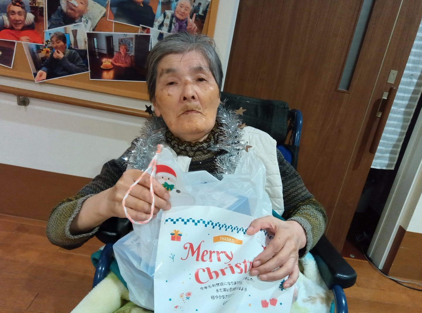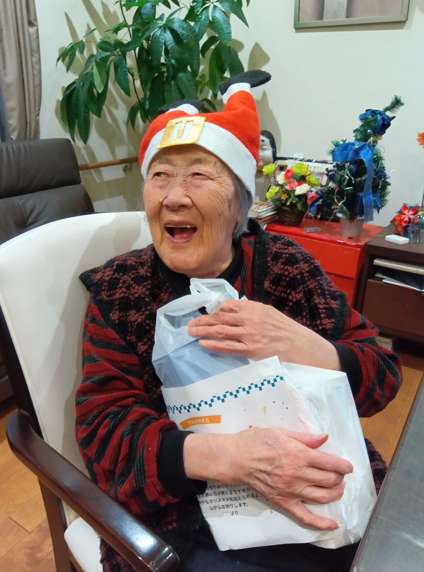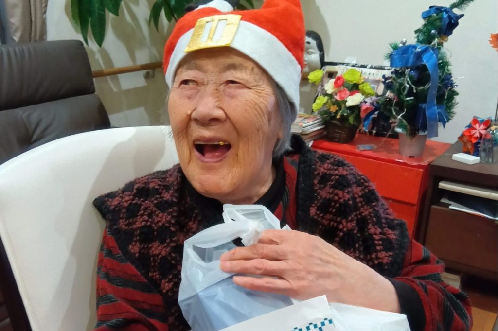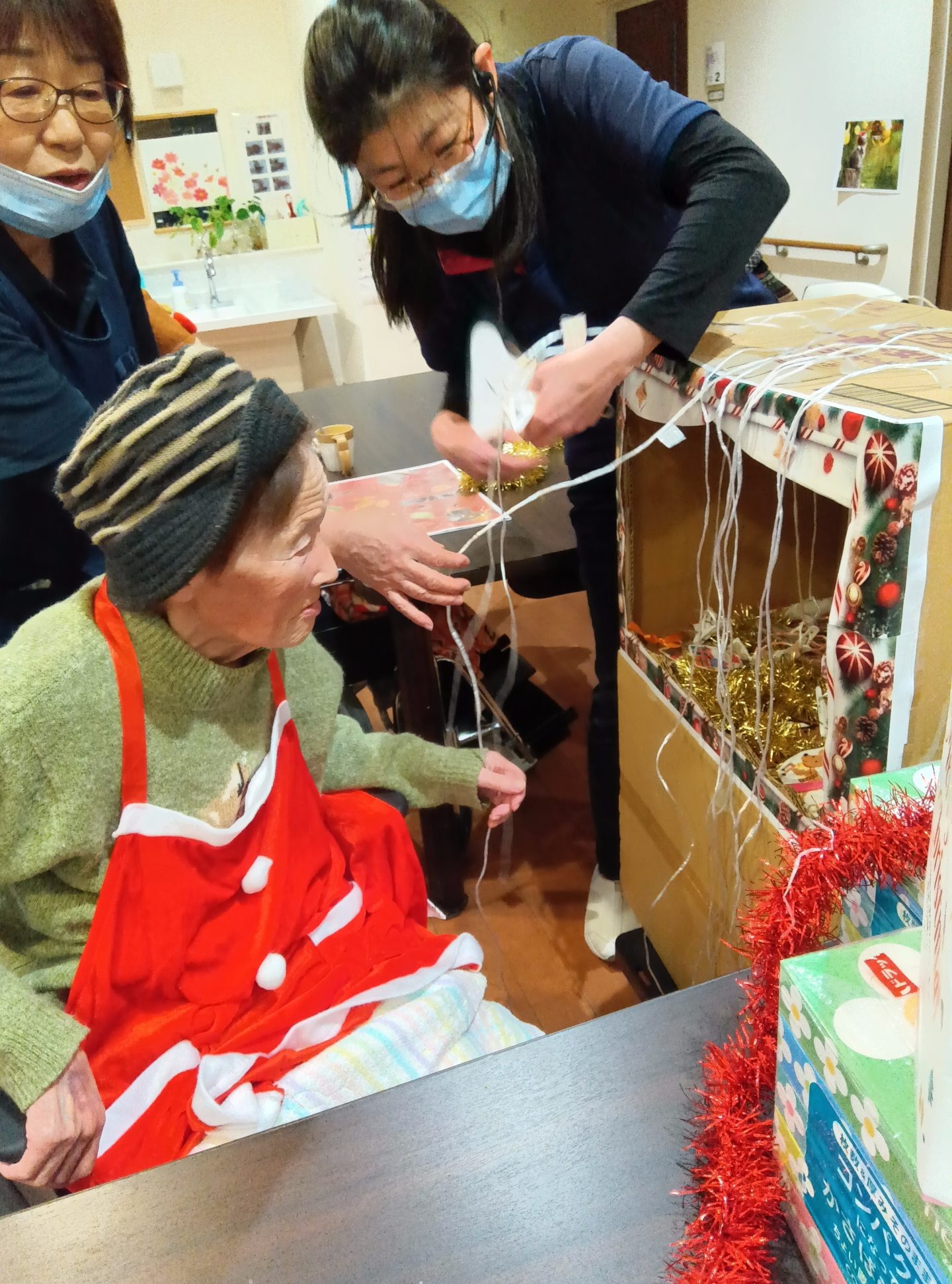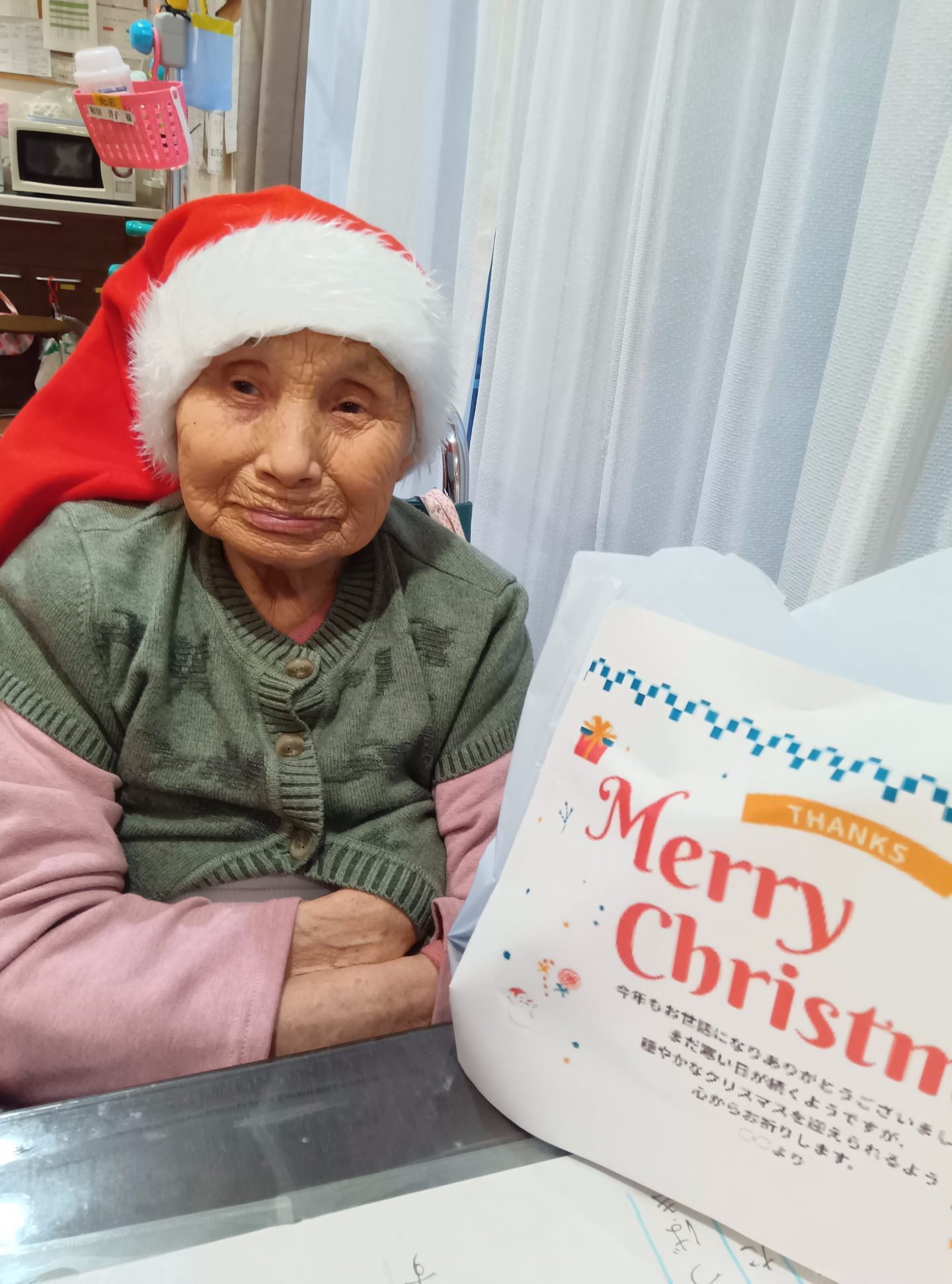 入居者のみなさんもクリスマスの衣装を身につけて、気分を味わいました。