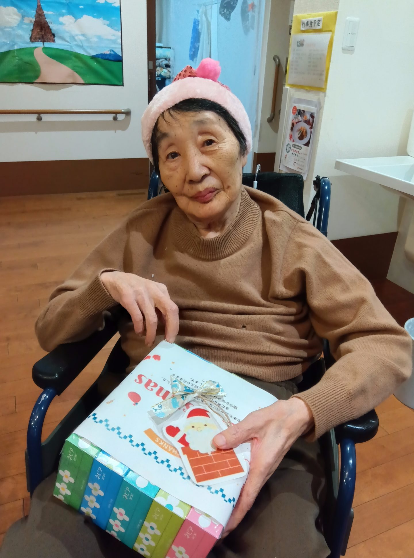 年の瀬も迫ったこの日、はなわあいのには今年もサンタクロースがたくさんのプレゼントを携えて来てくれました。
