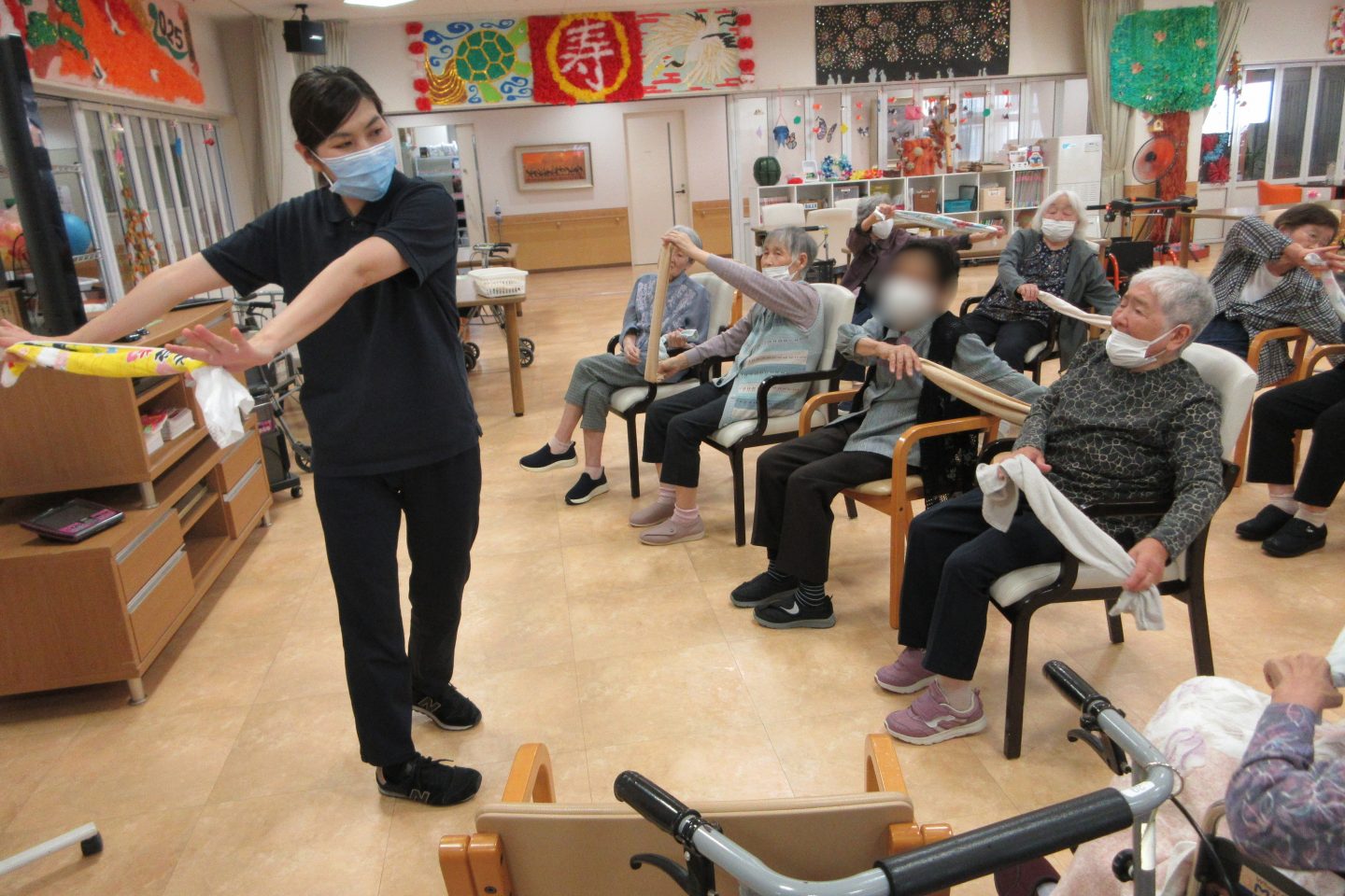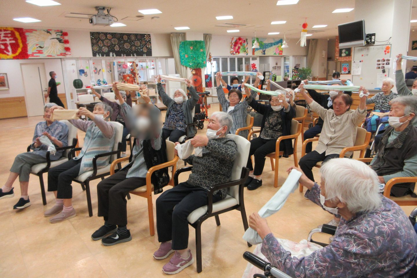 ケアホームおおゆデイサービスセンターでは、毎月いきいき運動の会の日を設けています。