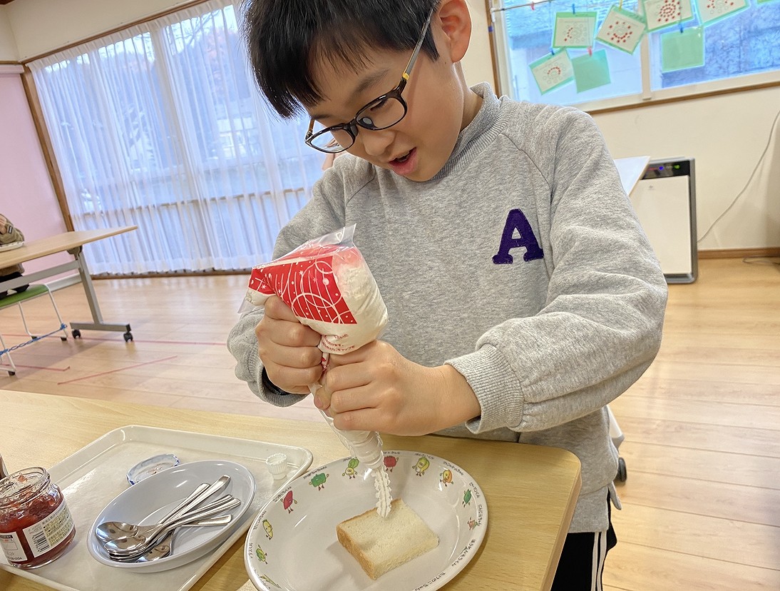 これまでのレパートリーは、マカロニきなこ、ホットケーキ、デコレーションパンです。