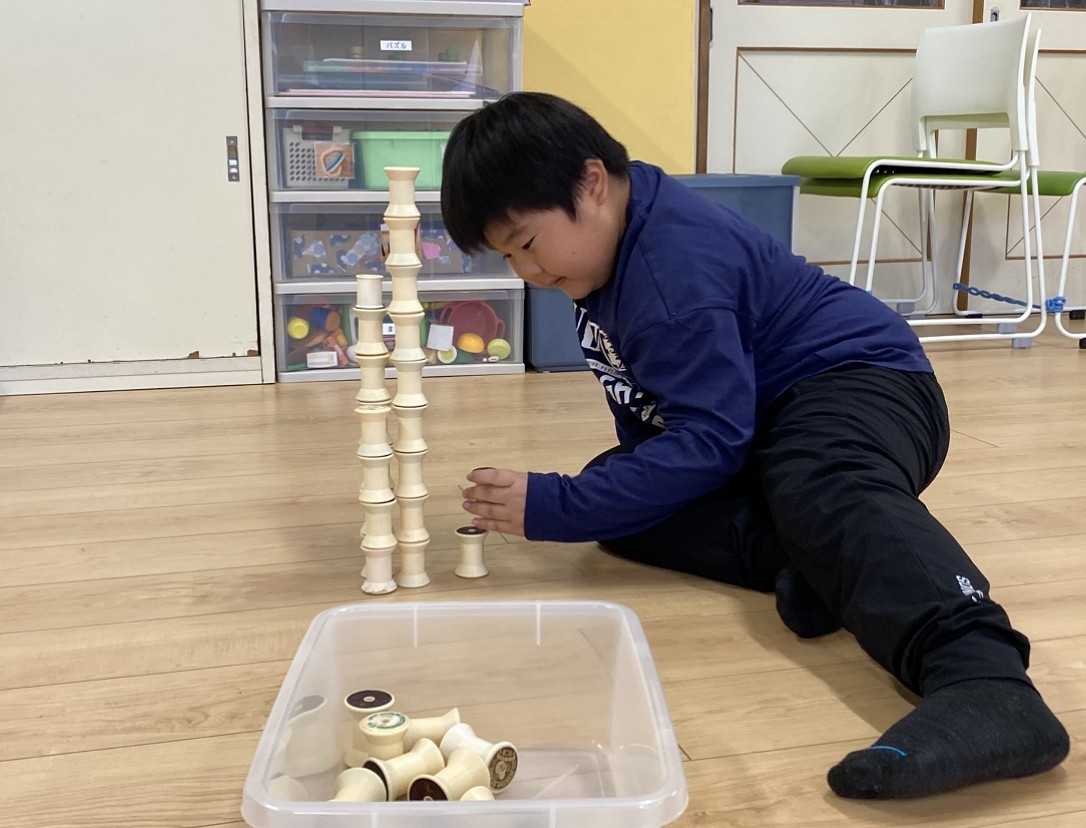 【積み上げよう…運動・感覚】崩れても大丈夫。時間内に何回でも積み直せるよ。