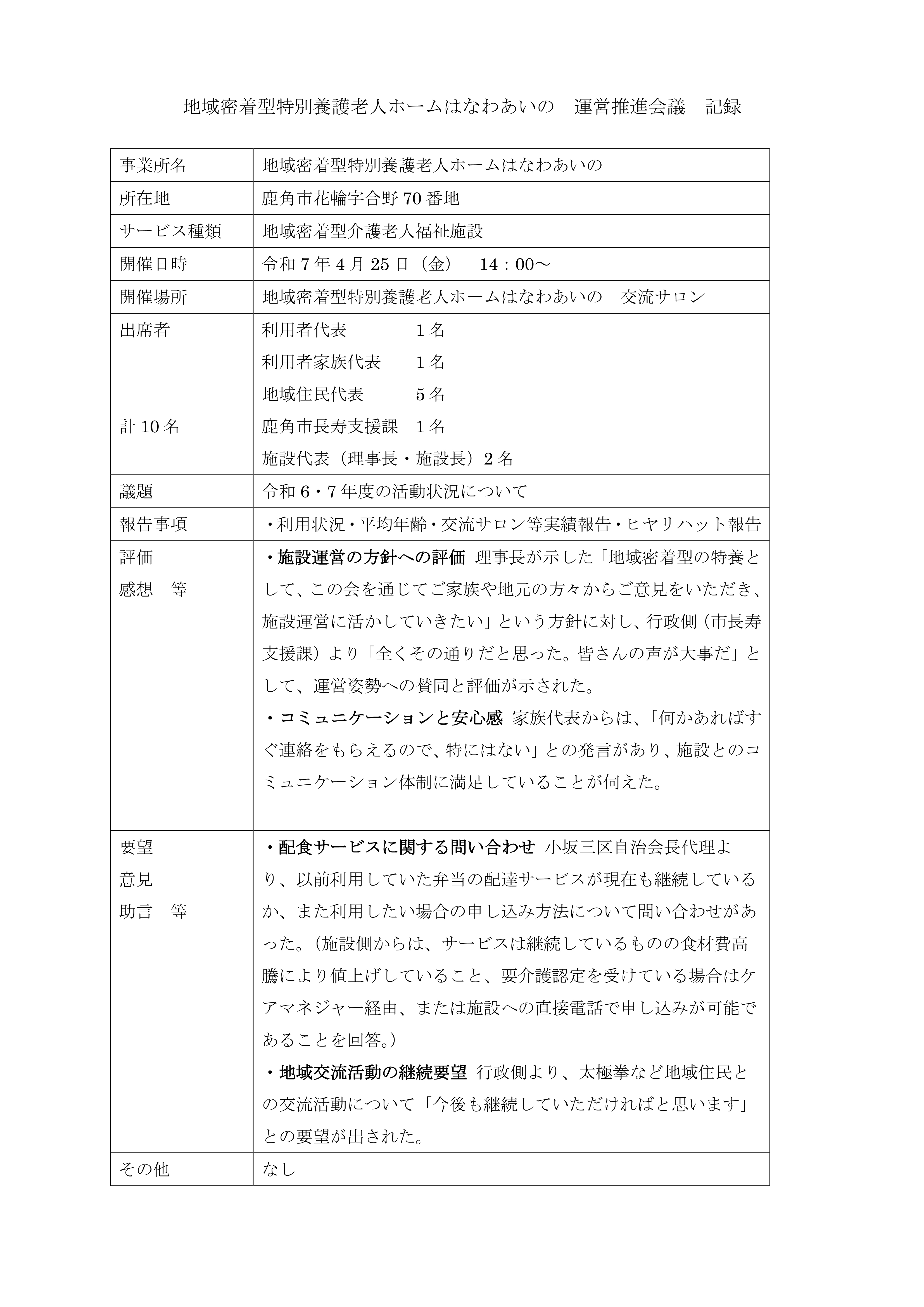 令和7年度 第1回運営推進会議 公表 | お知らせ | 社会福祉法人 愛生会