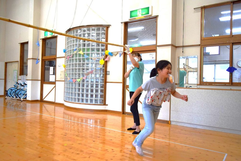 体を動かそう週間パートⅡ『新聞紙合戦』『パン食い競争』