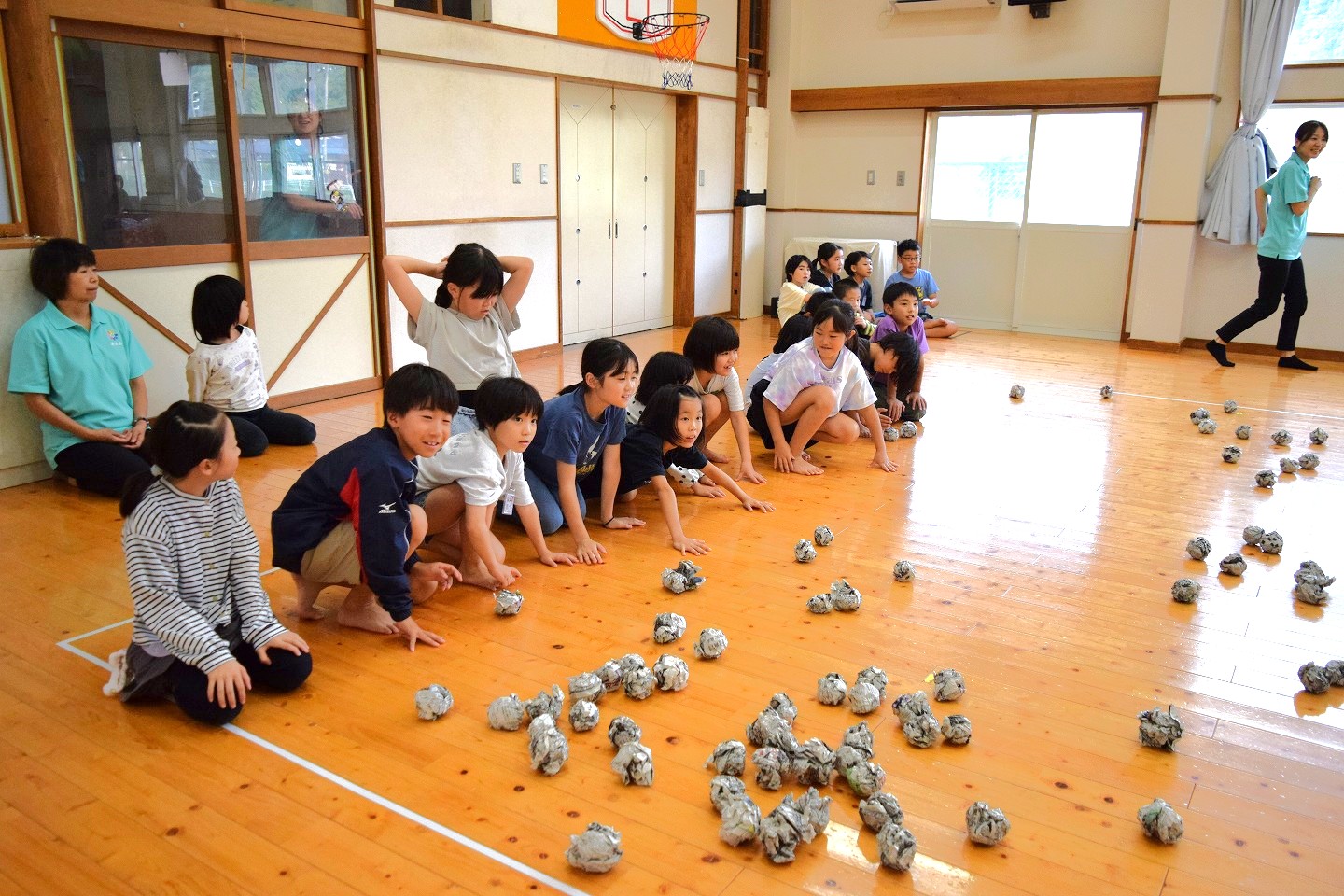 攻めるだけでなく、コートに落ちた新聞玉を集めるところまでチームワークをしっかり発揮してくれました。
