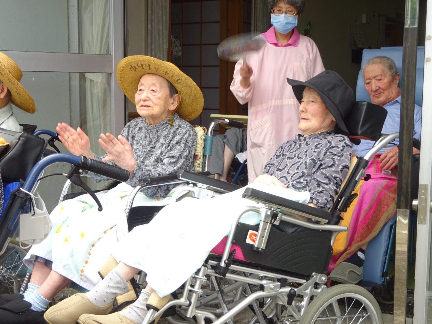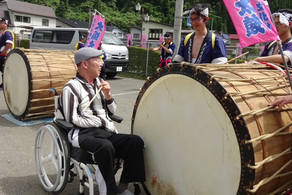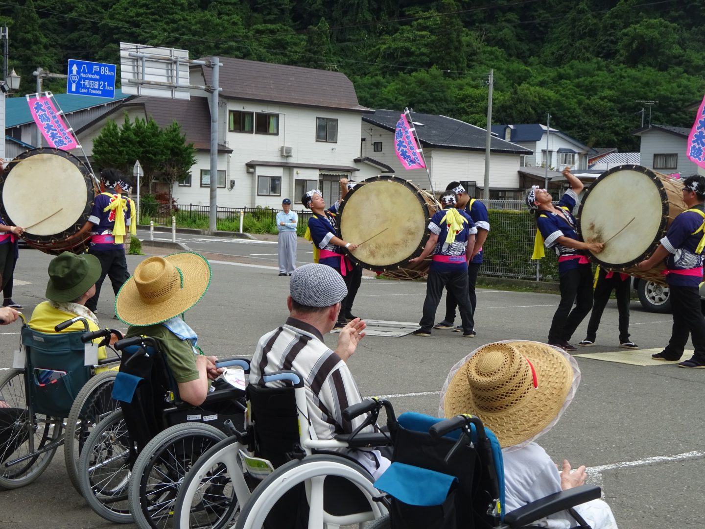 大湯大太鼓まつりに合わせて、今年も鹿角市大湯大太鼓保存会のみなさまがケアホームおおゆに訪問してくださいました。