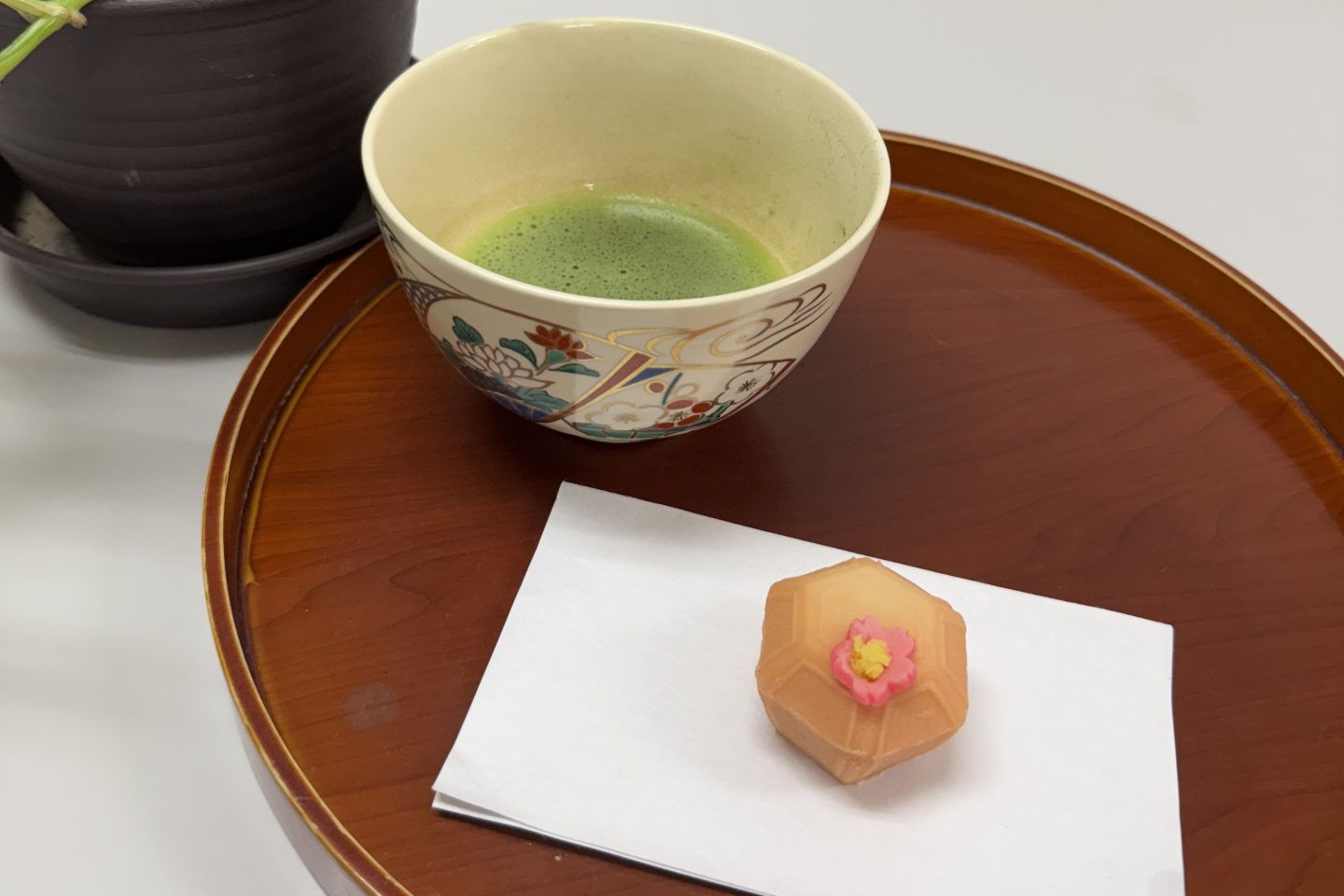 この日のために用意したのは、美しい和菓子。日本の伝統が詰まった和菓子と抹茶を食べながら、和やかな時間を過ごしました。