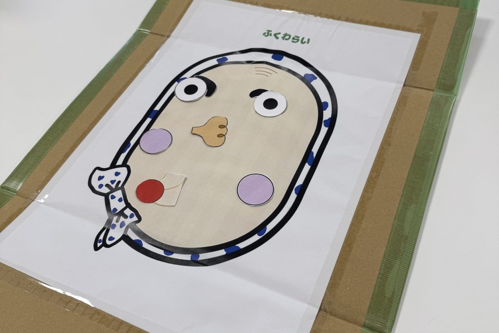 食後はみなさんでお正月の定番“福笑い”に挑戦!!