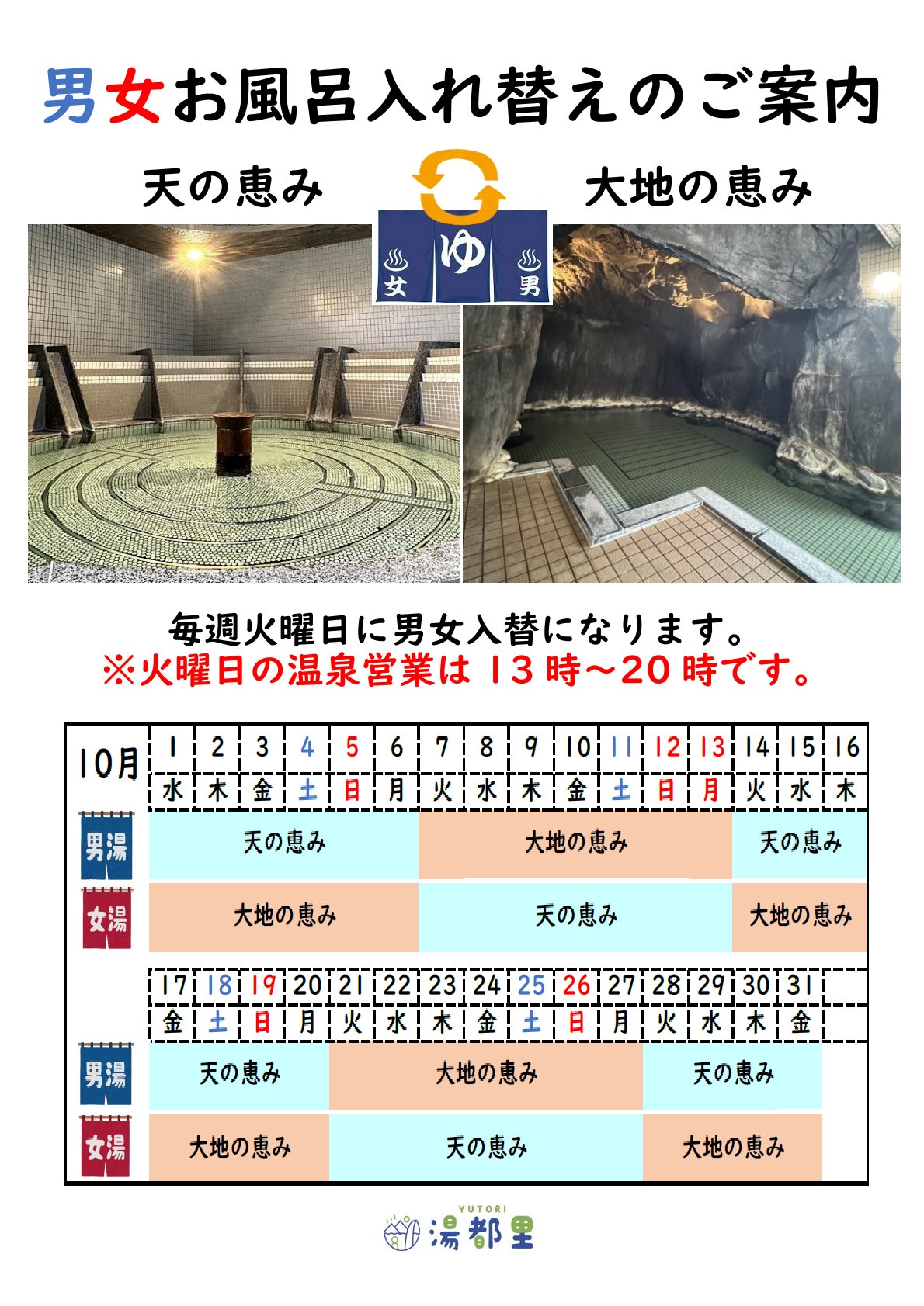 10月の男女お風呂入替のご案内 | お知らせ | 社会福祉法人 愛生会